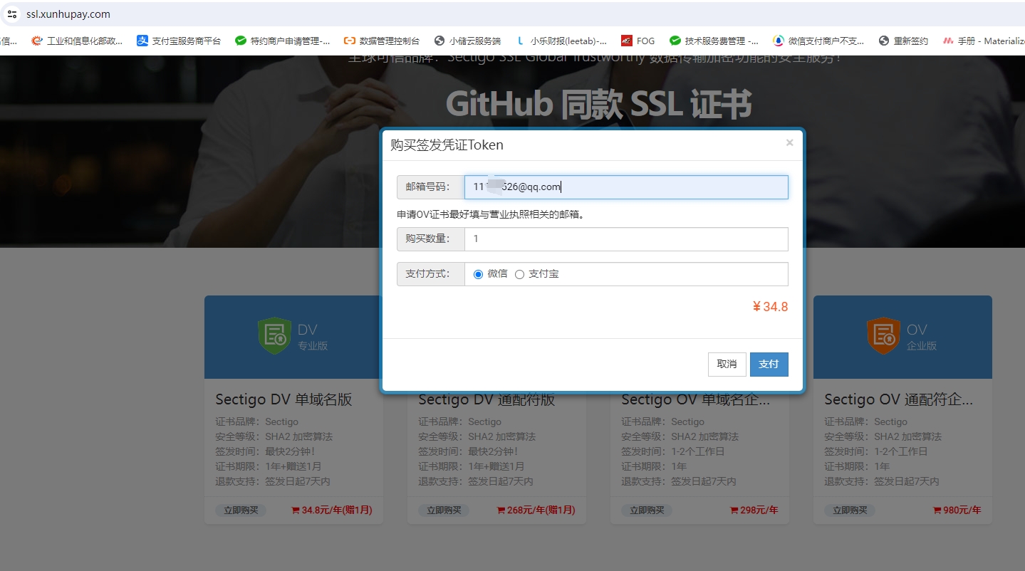 选择你需要的证书类型,下单,支付成功后邮件就会收到token,是一串字母